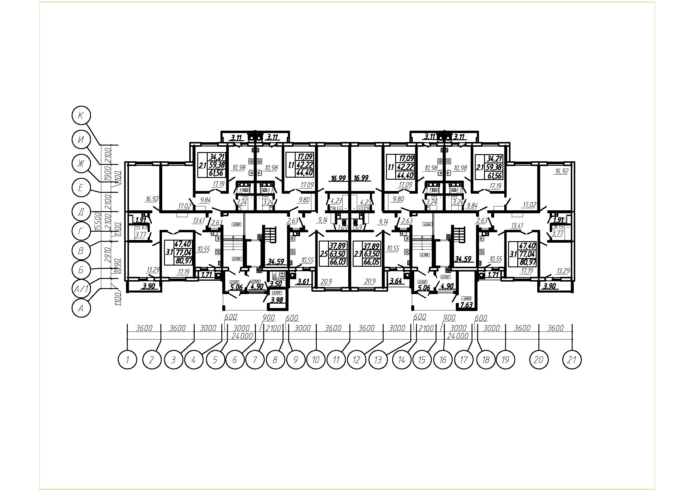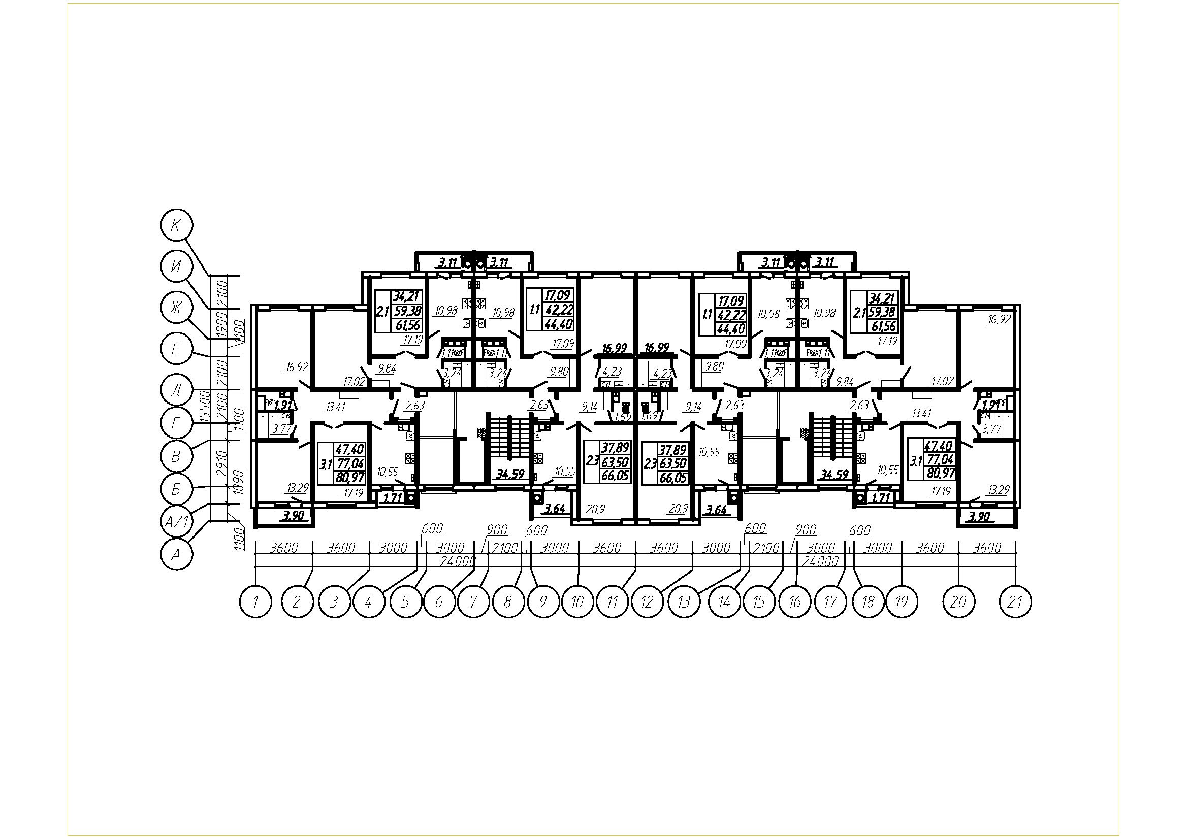 - двухпакаёвых - 20 шт., агульнай плошчай 61,56 - 66,05 м2;